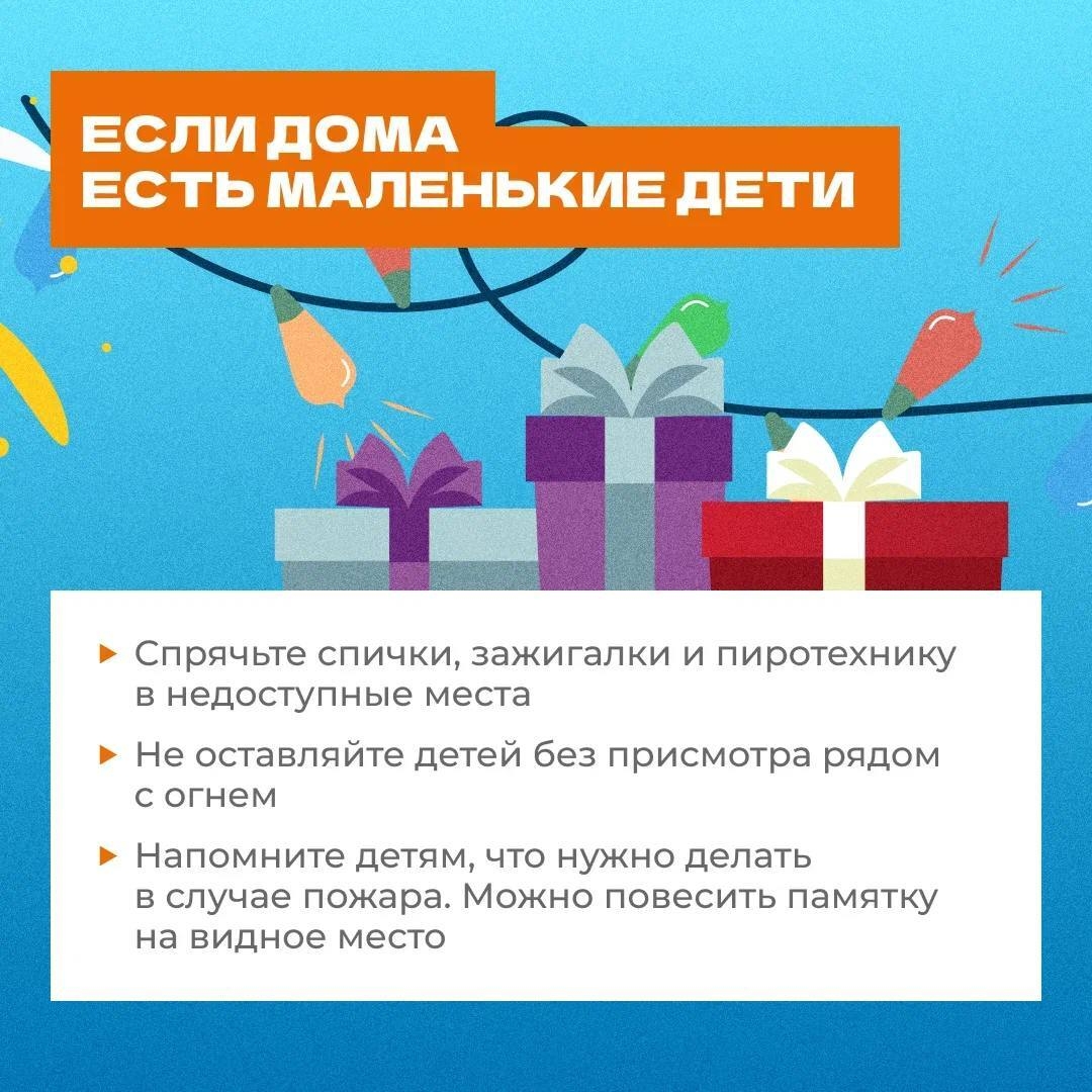 Гирлянды, хлопушки, бенгальские огни и свечи – это неизбежная атрибутика новогоднего праздника. Чтобы Новый год был ярким и веселым – соблюдайте простые, но важные правила. В наших карточках – что нужно знать о пожарной безопасности. В случае чрезвычай