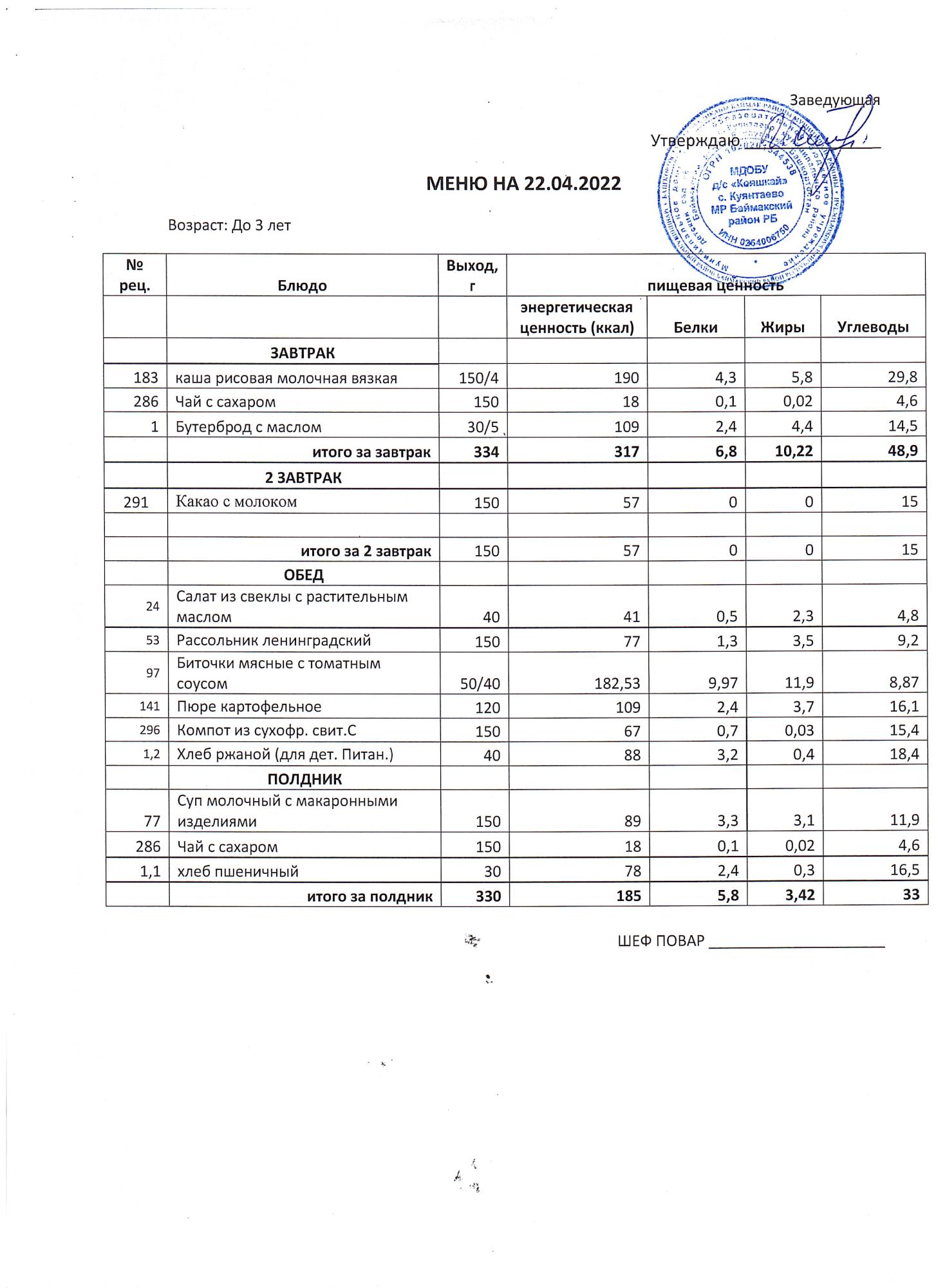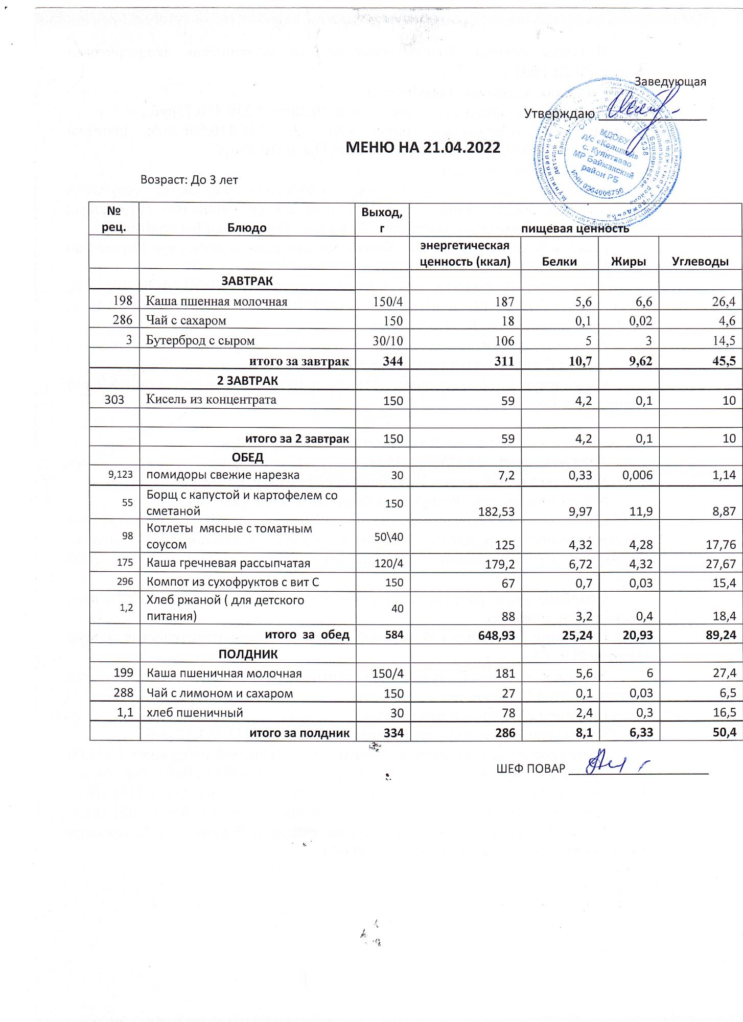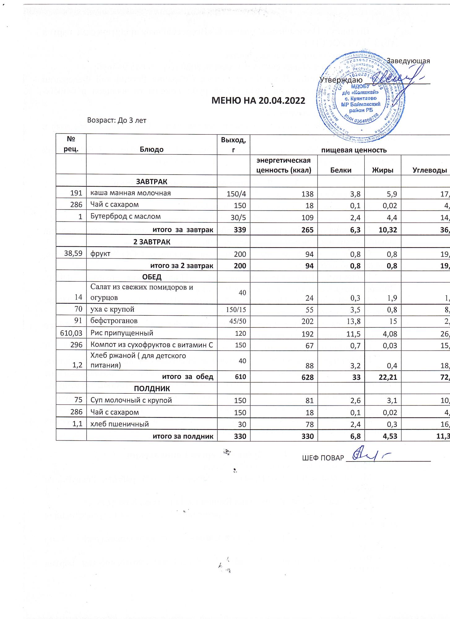 (Меню до 3-х лет)