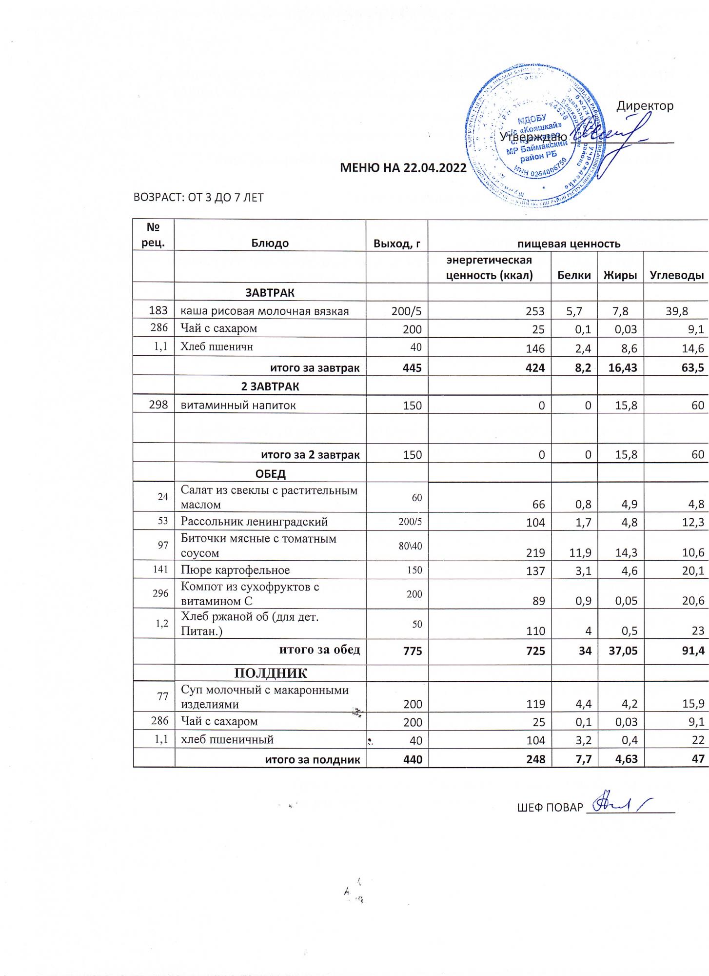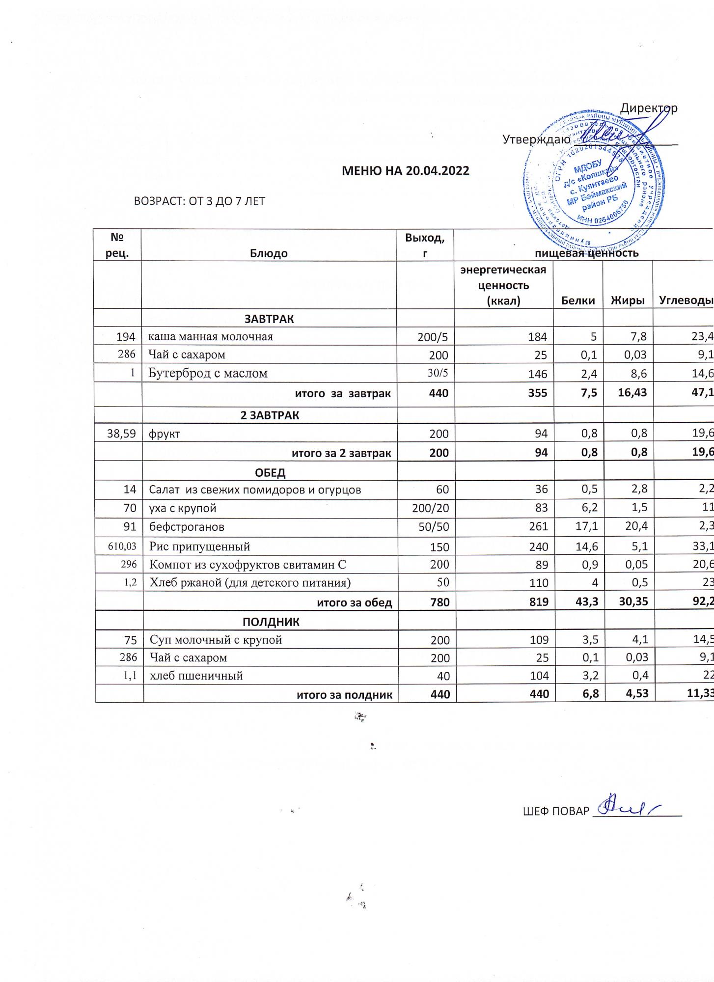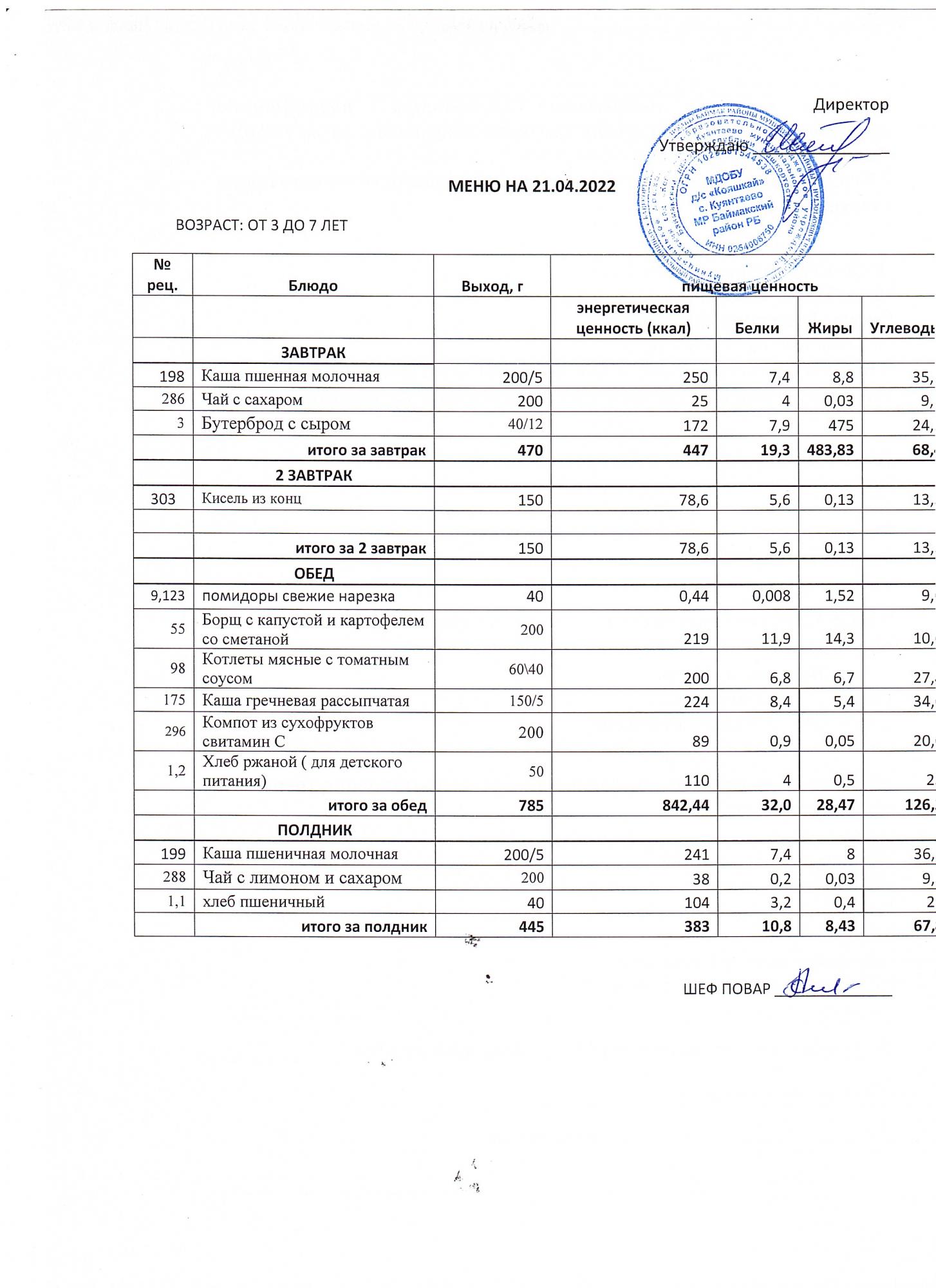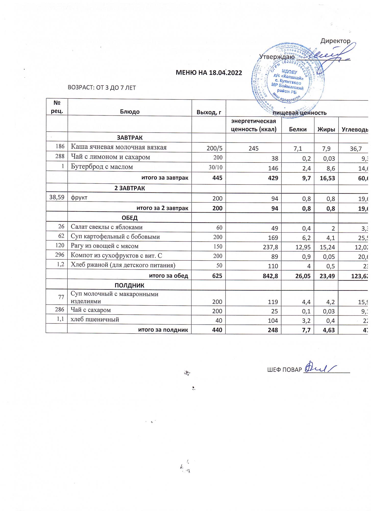 (меню от3-х до 7 лет)