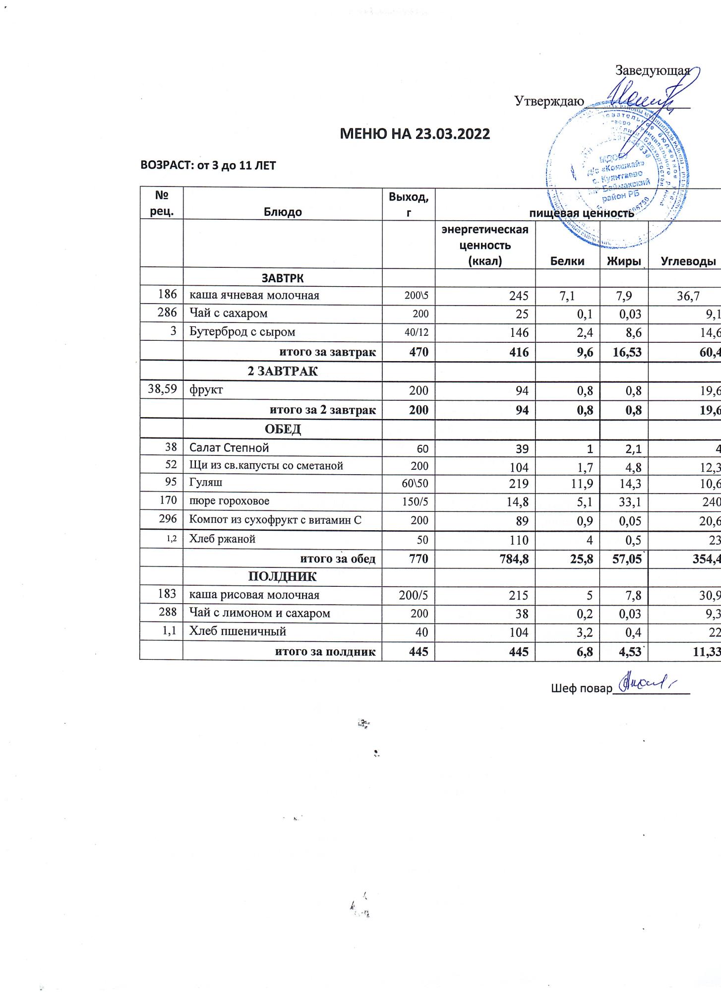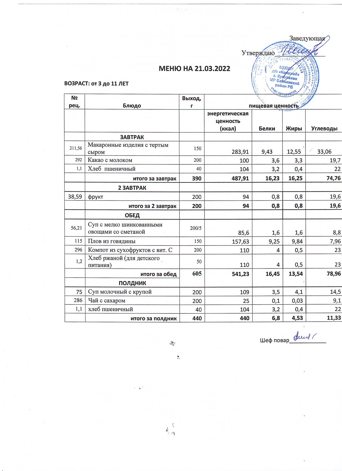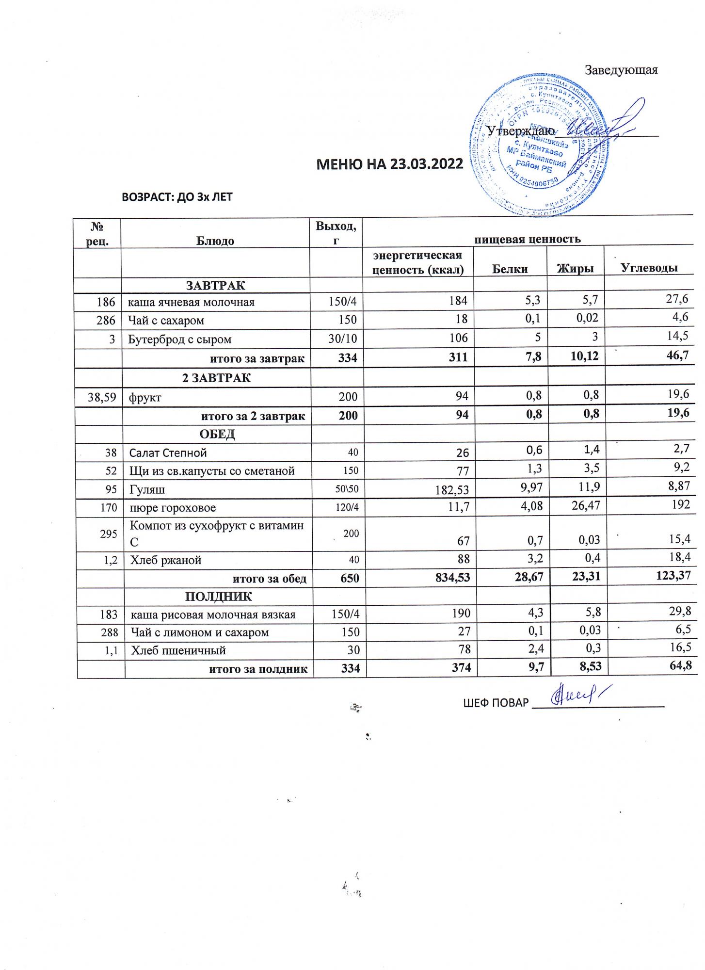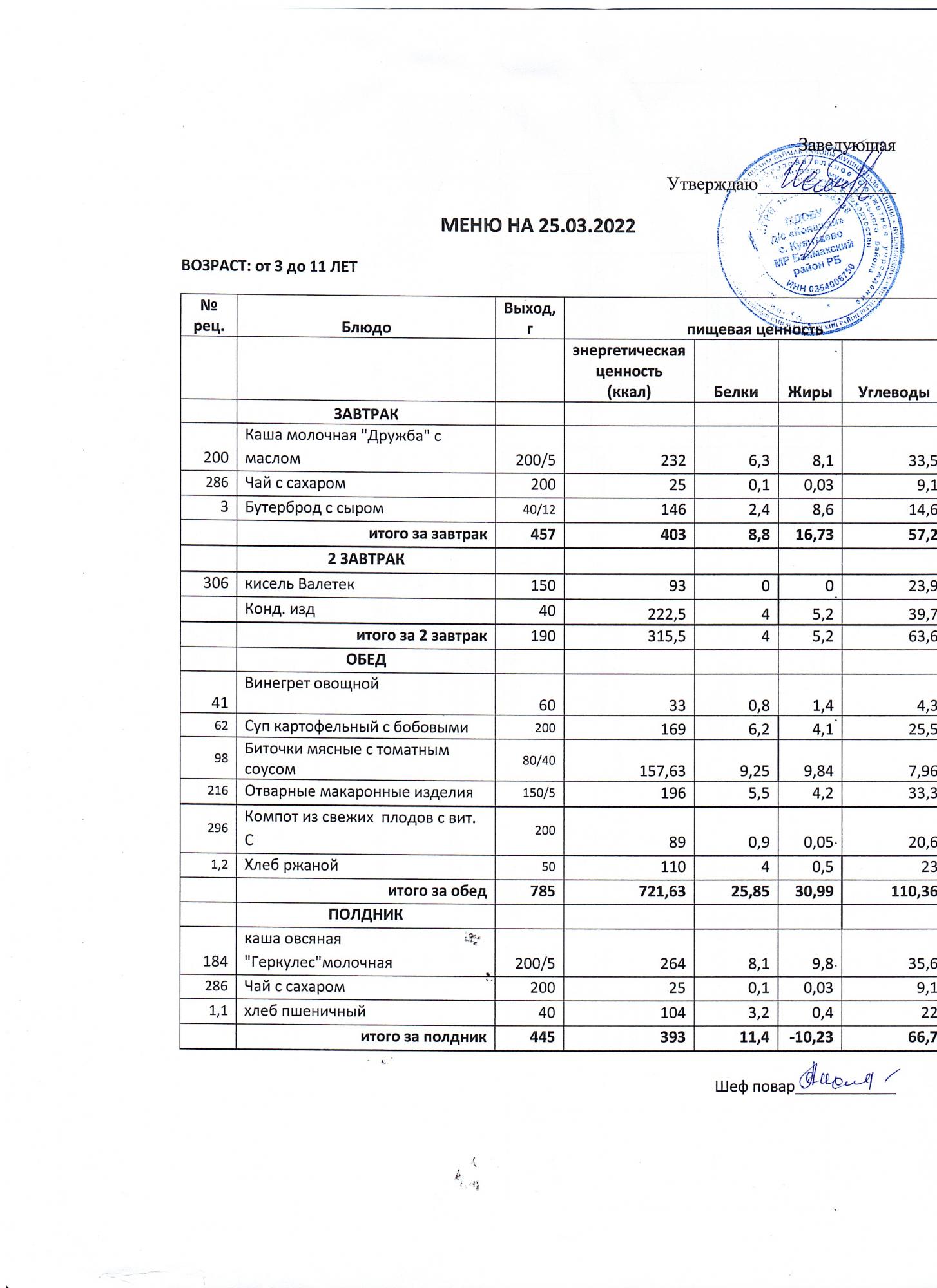 (меню от3-х до 7 лет)