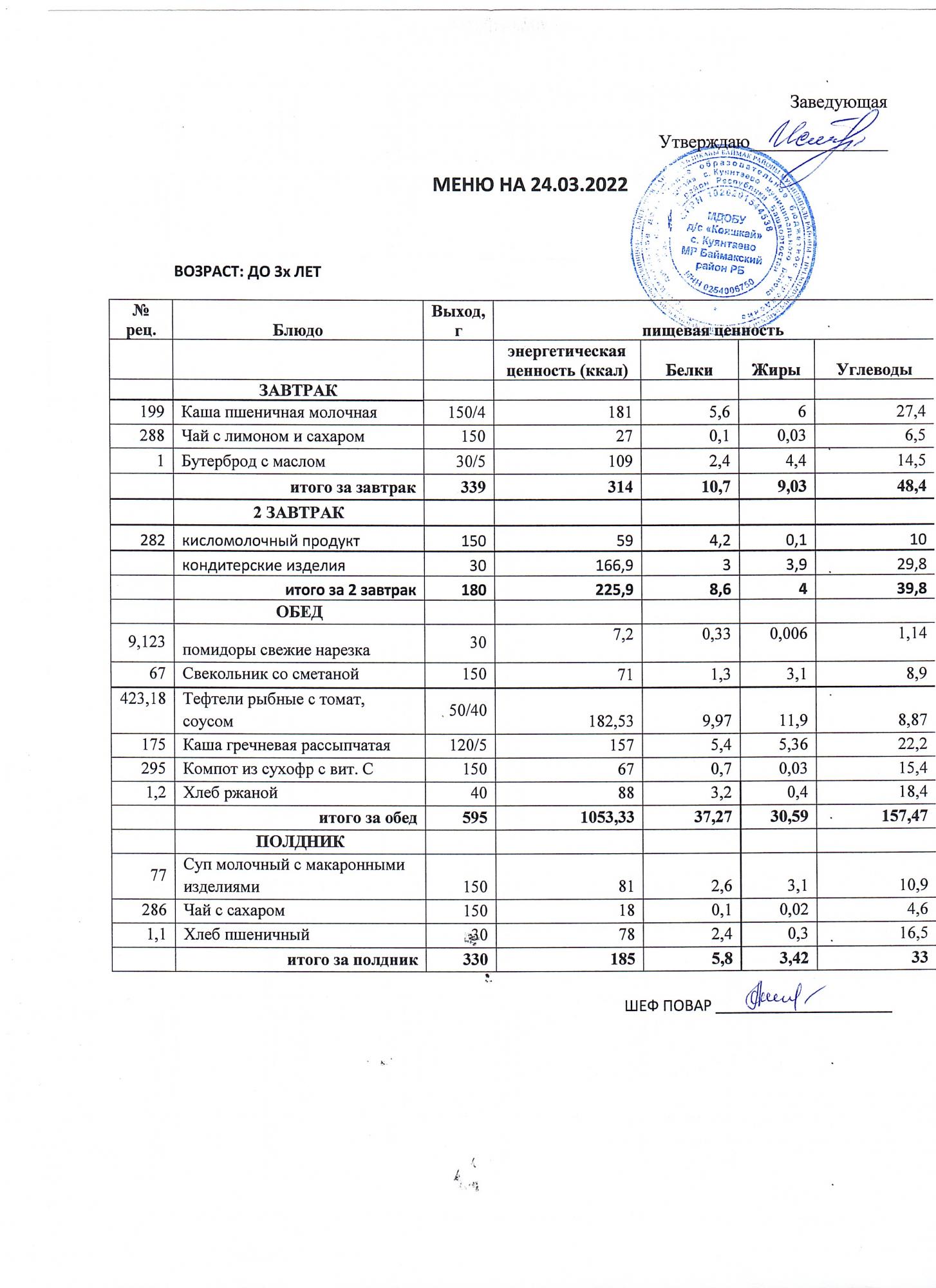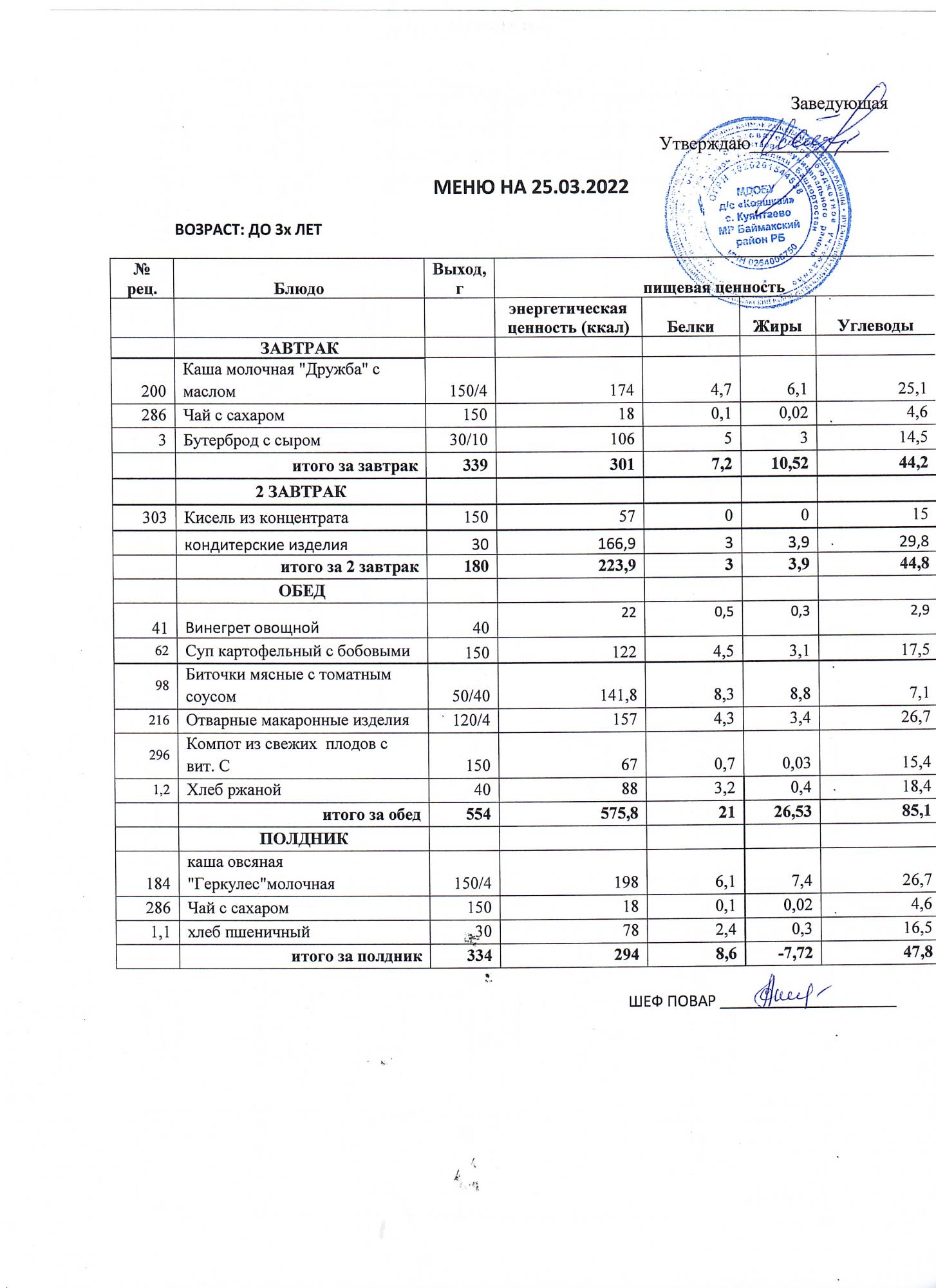 (Меню до 3-х лет)