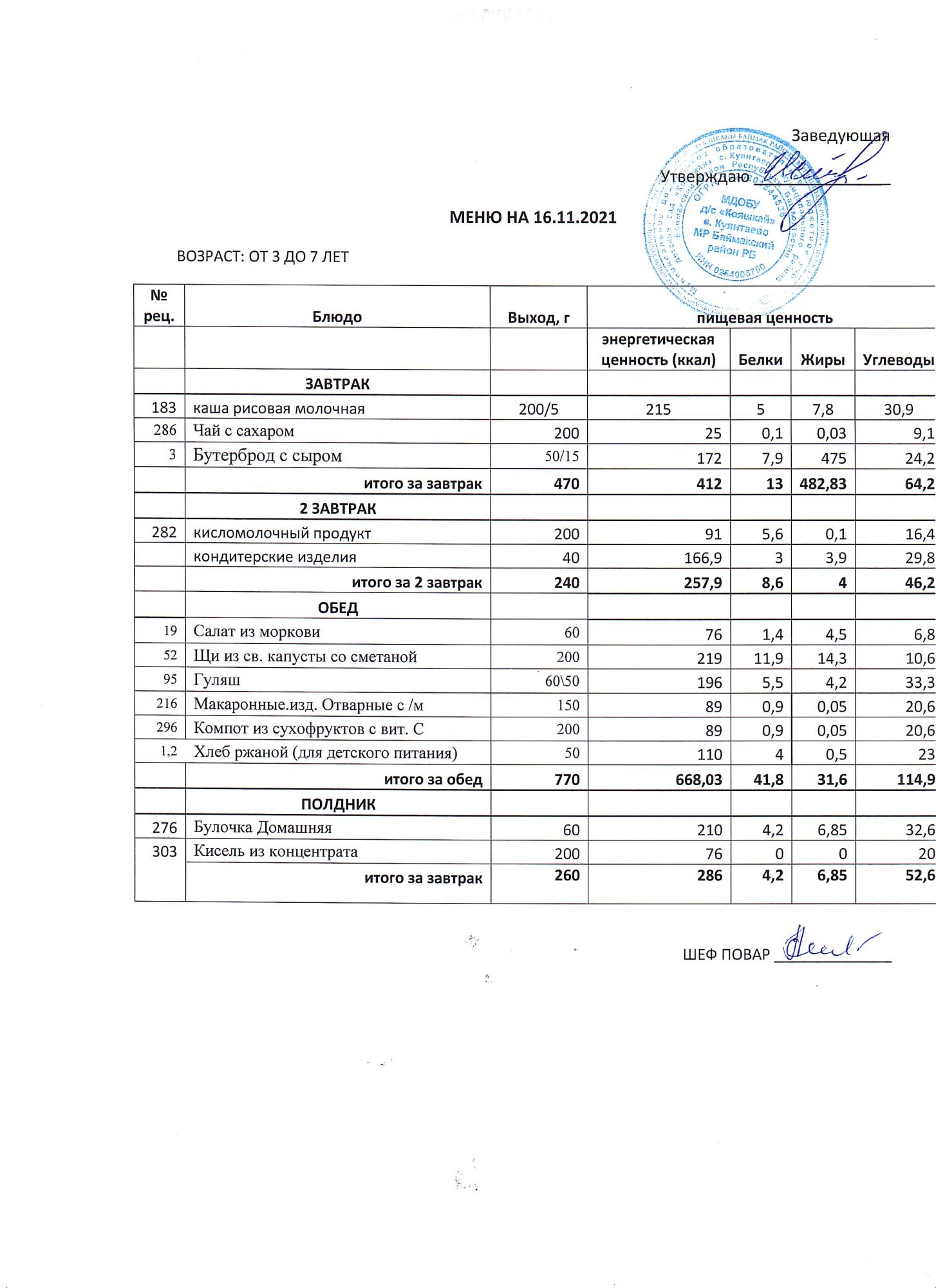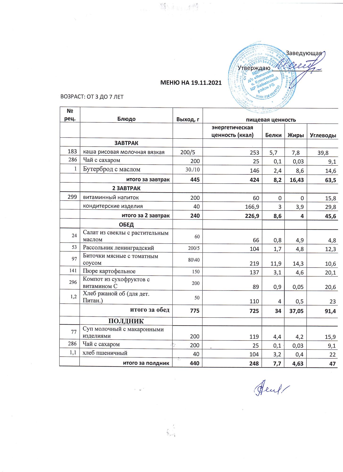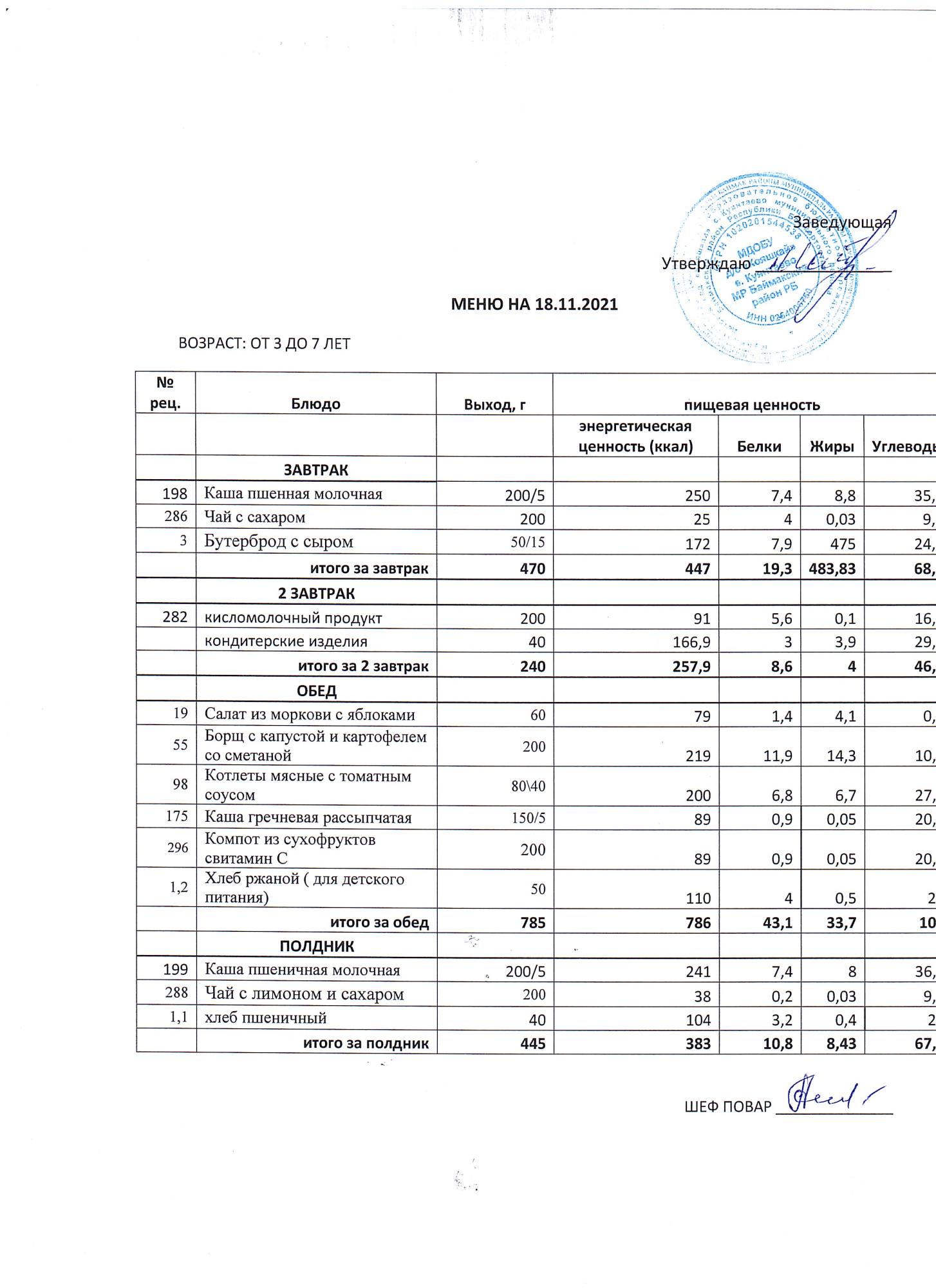 (меню от3-х до 7 лет)