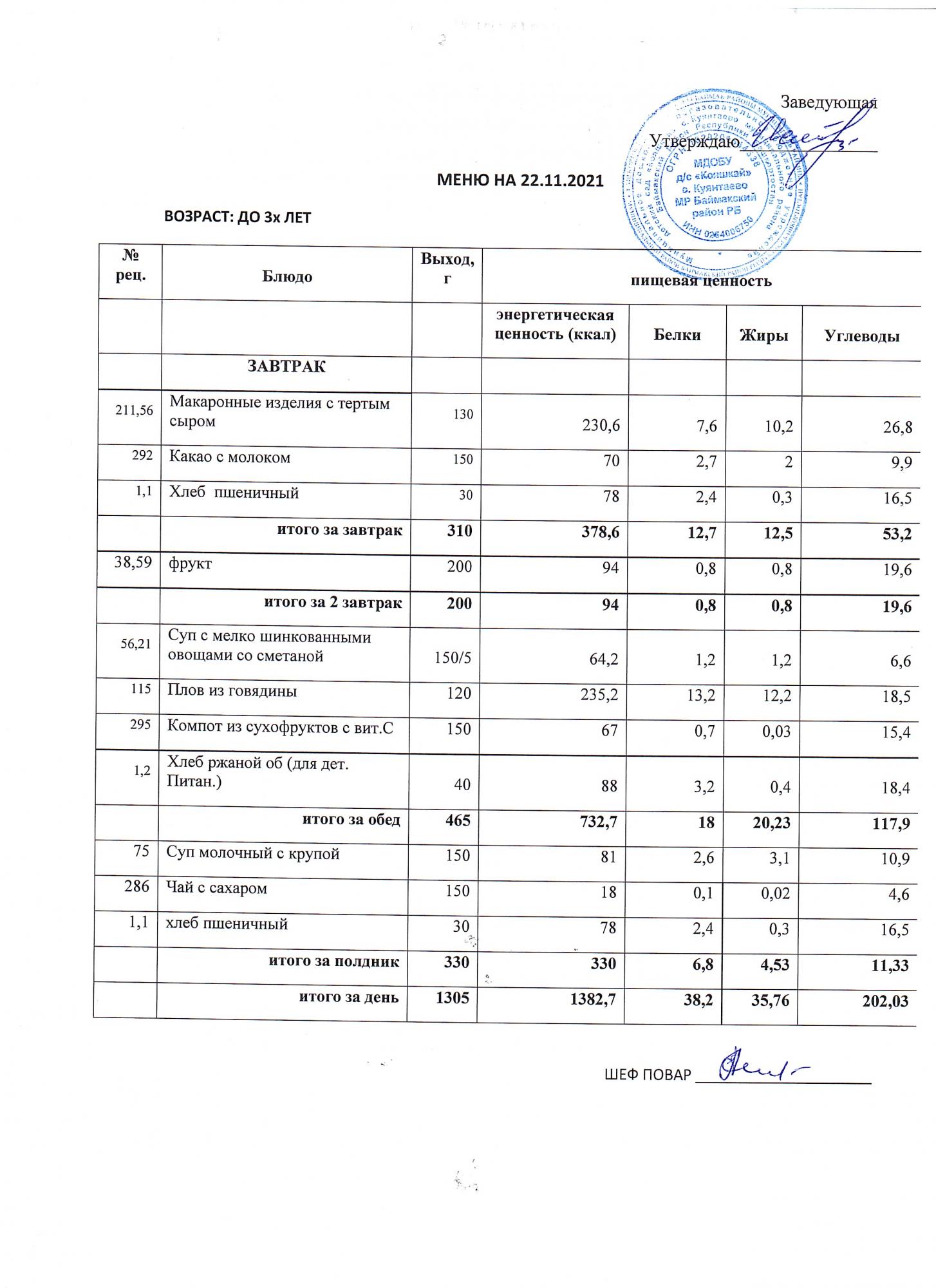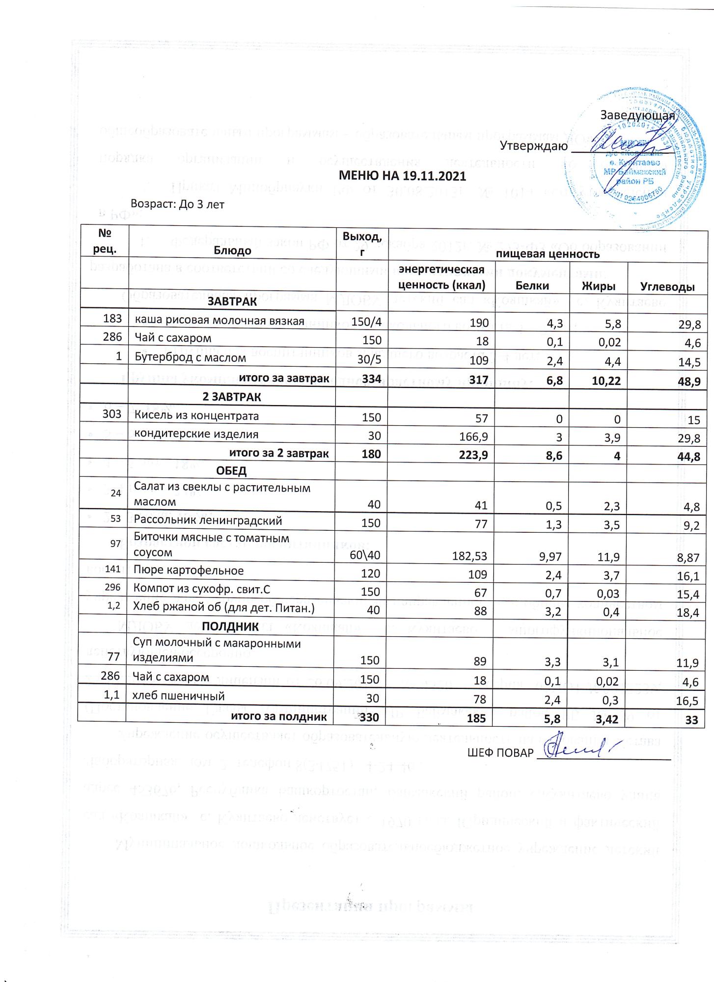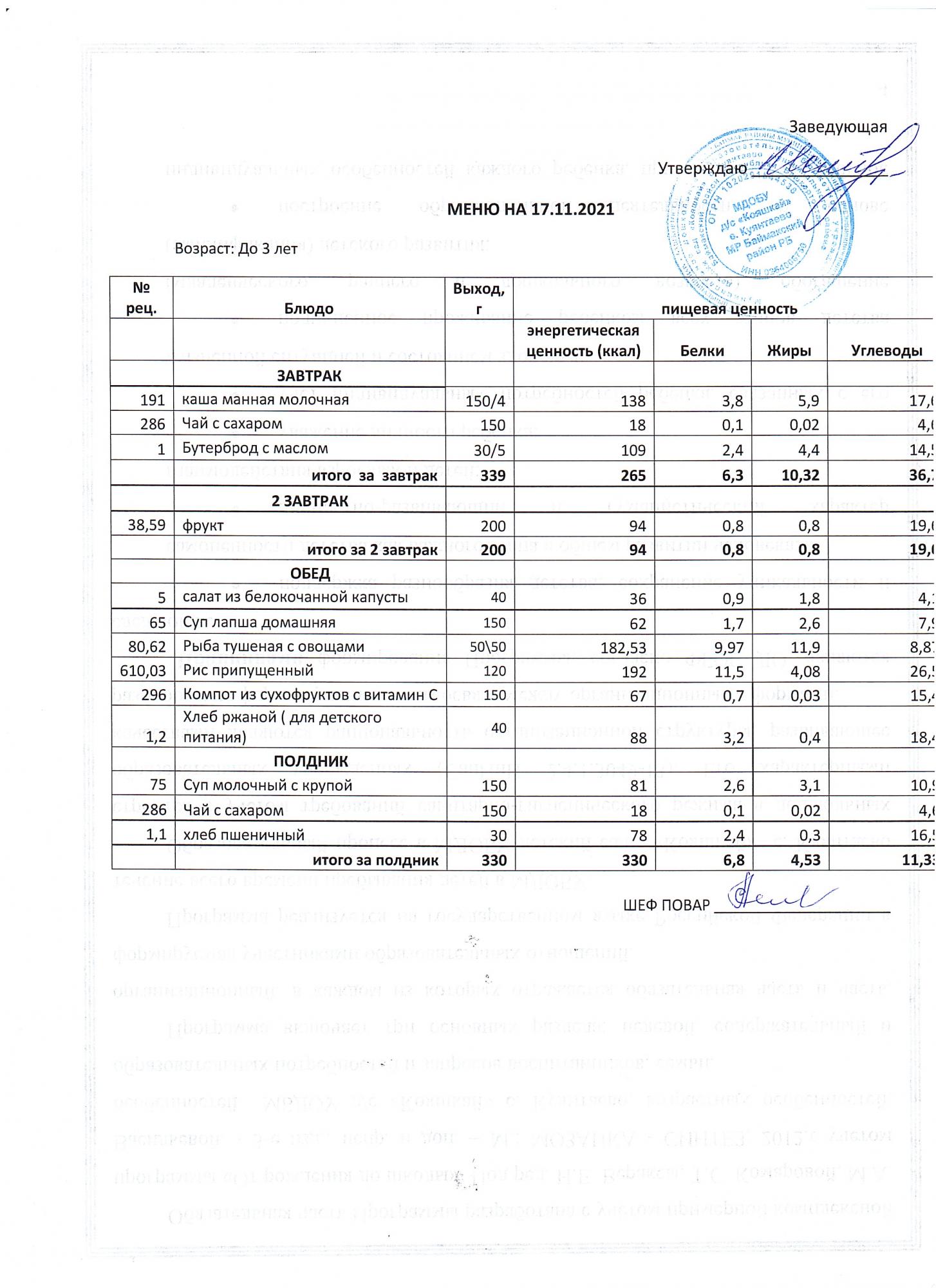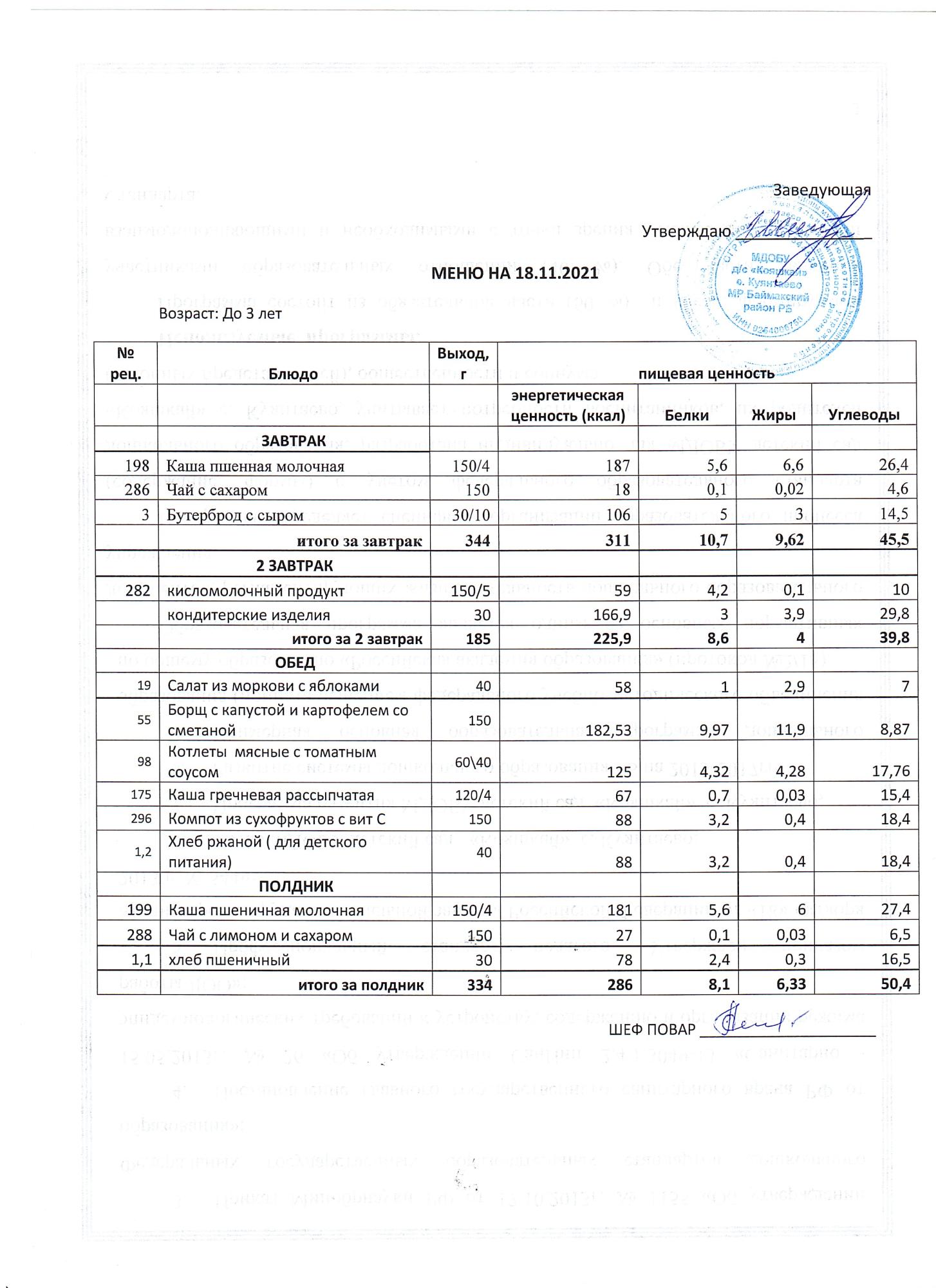 (Меню до 3-х лет)